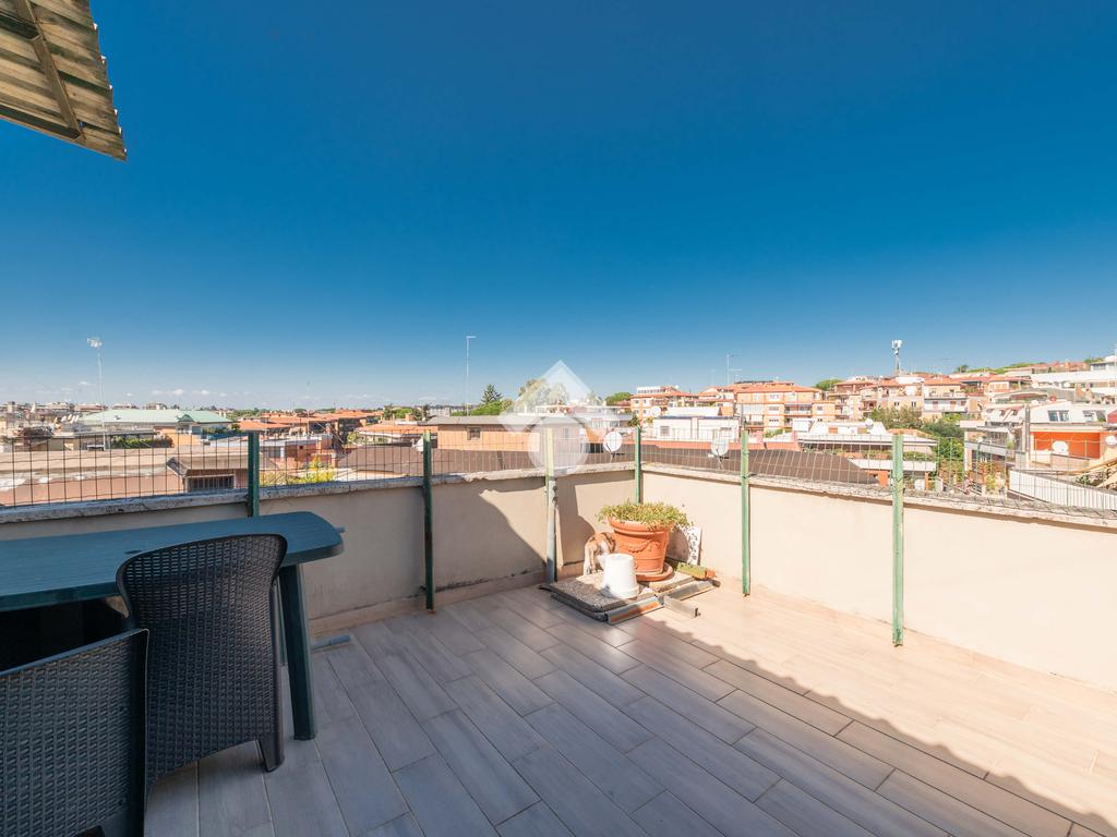 Salendo al livello superiore, si accede a una terza stanza versatile, perfetta come studio, camera per gli ospiti o zona relax, servita da un pratico ripostiglio. Il vero punto di forza di questo piano è l’ampio terrazzo a livello, che offre una vista aperta e suggestiva sui tetti e sul paesaggio circostante: uno spazio esclusivo, ideale per godersi momenti di quiete all’aperto o per organizzare cene e aperitivi in compagnia.