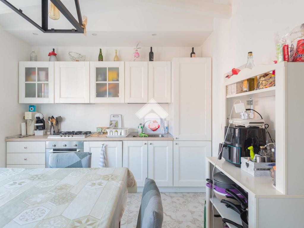 L’attico si distingue per le ottime condizioni interne, frutto di una ristrutturazione curata nei dettagli, e per la luminosità naturale che lo pervade in ogni ambiente.